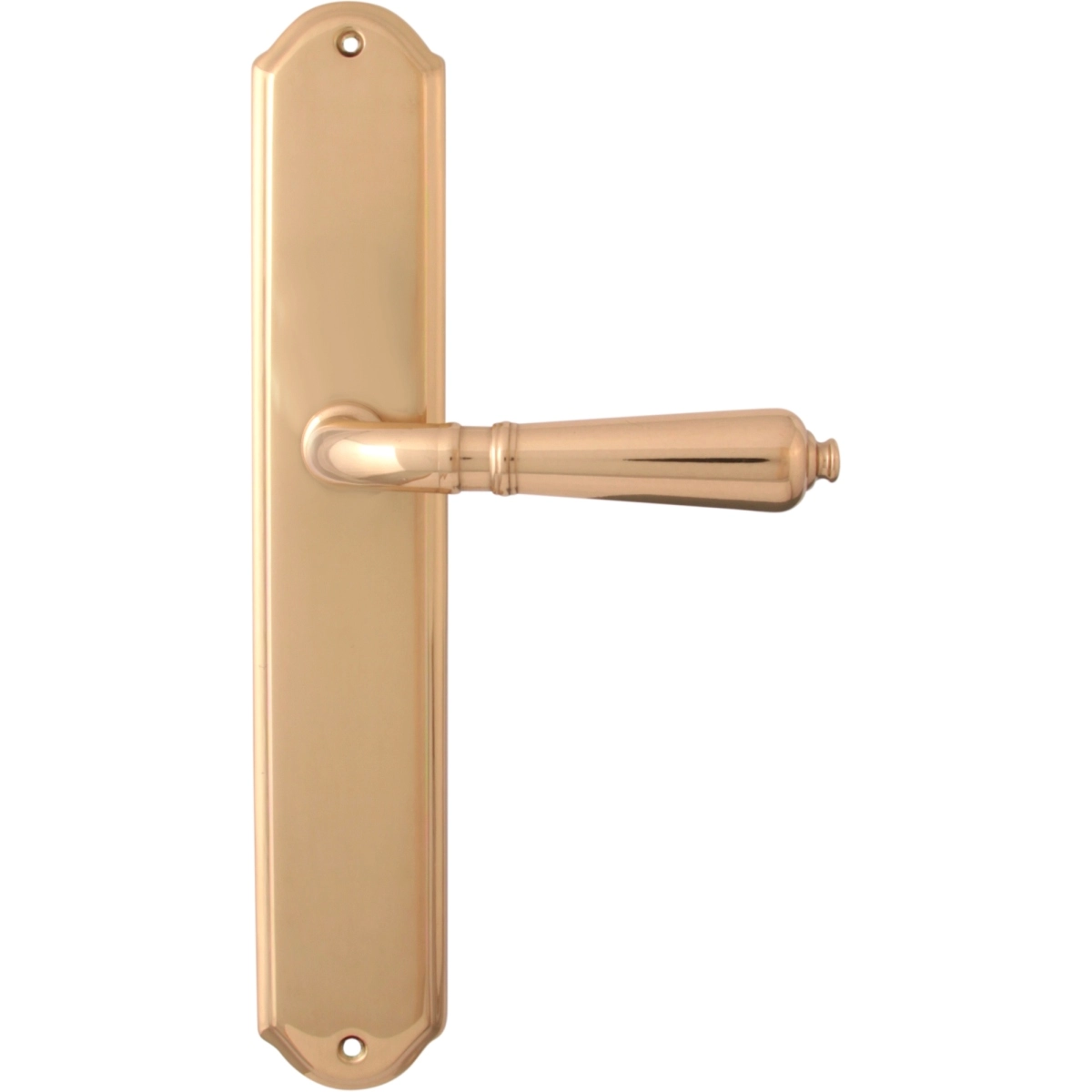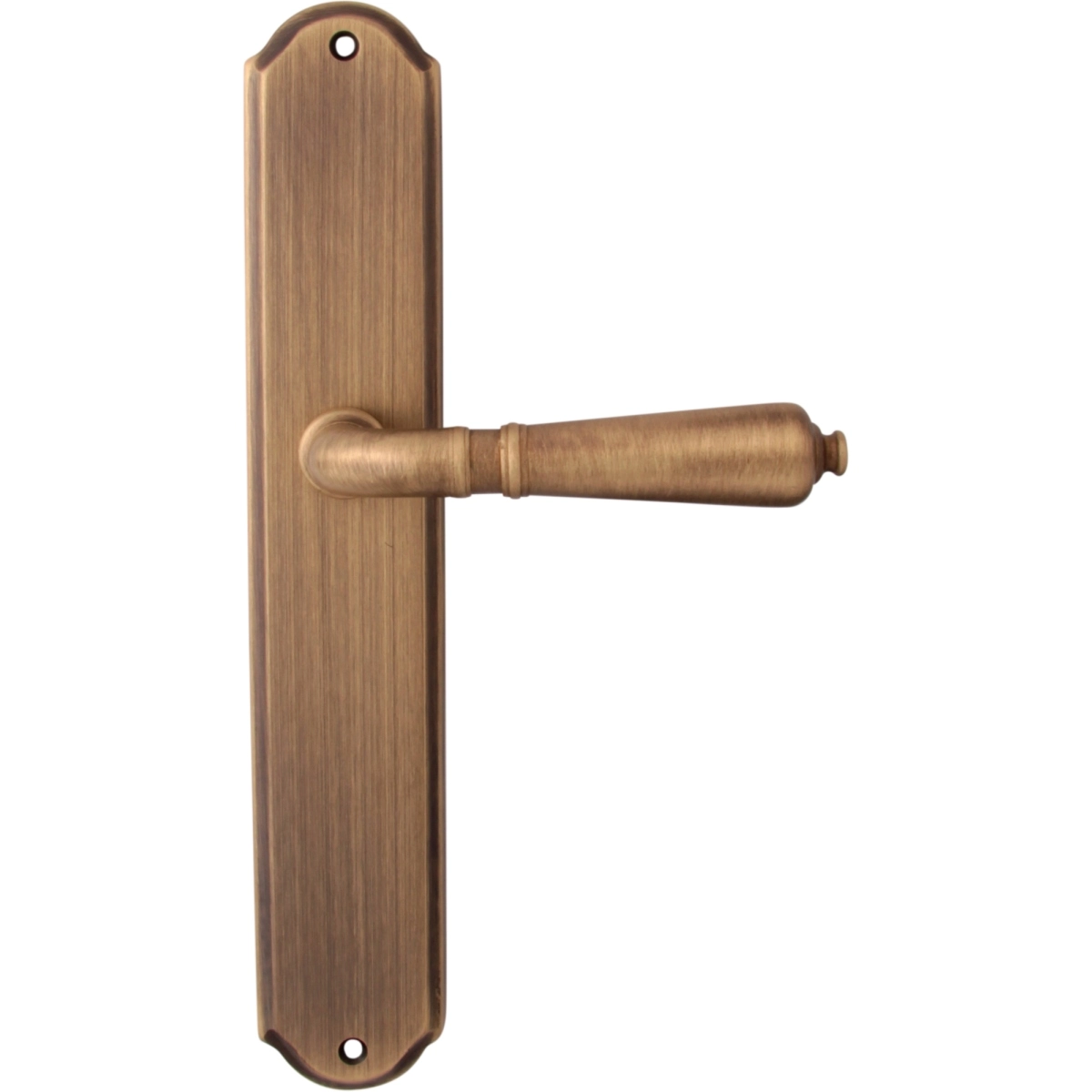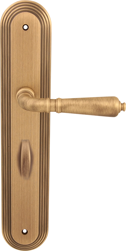Дверная ручка на планке из коллекции Melodia фабрики Fadex (Италия) с отверстием под цилиндровый механизм. Дверные ручки выполнены в классическом стиле и изготовлены из высококачественной латуни методом художественного литья. Каждая модель, в зависимости от типа запирания замка, может иметь 4 варианта исполнения планки: без запирания (глухая), с сантехническим фиксатором, с отверстием под цилиндровый механизм, а также с отверстием под межкомнатный (кабинетный) ключ «буратино». Таким образом, ручки одной модели можно подобрать как для межкомнатных, так и для входных дверей.