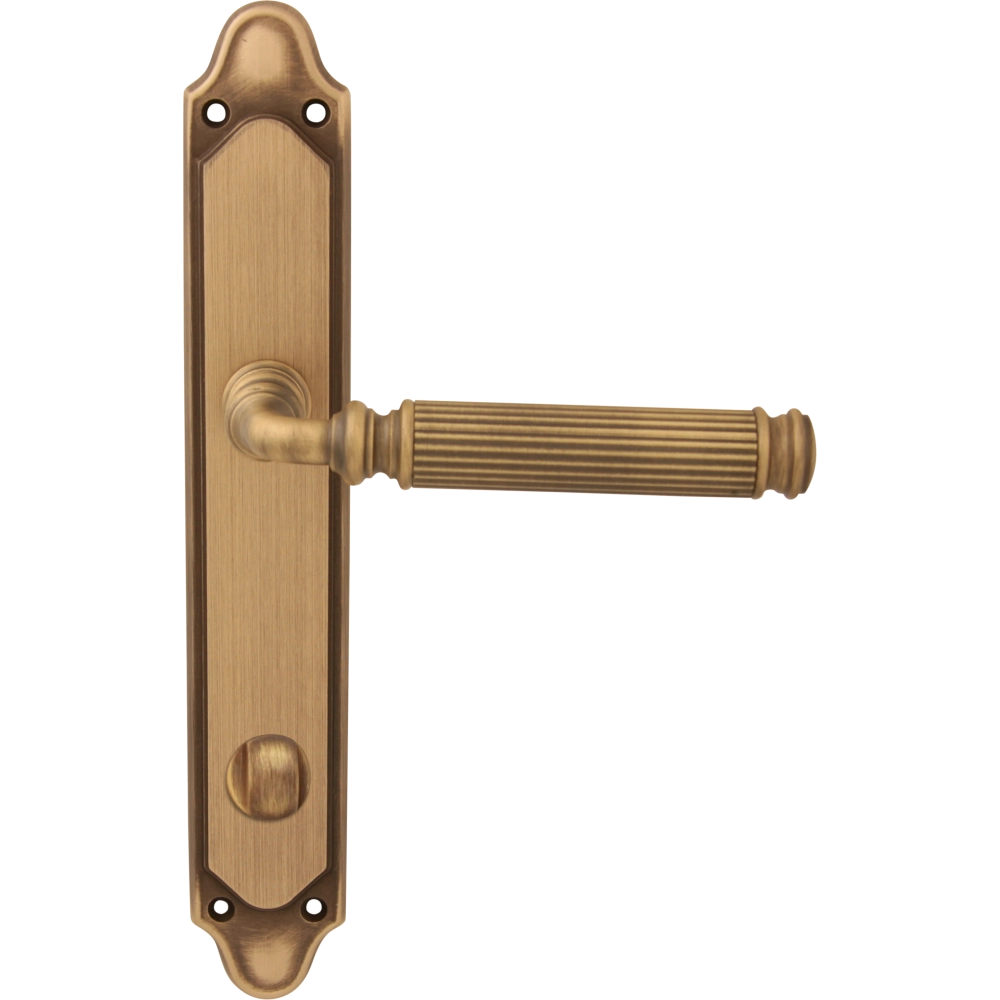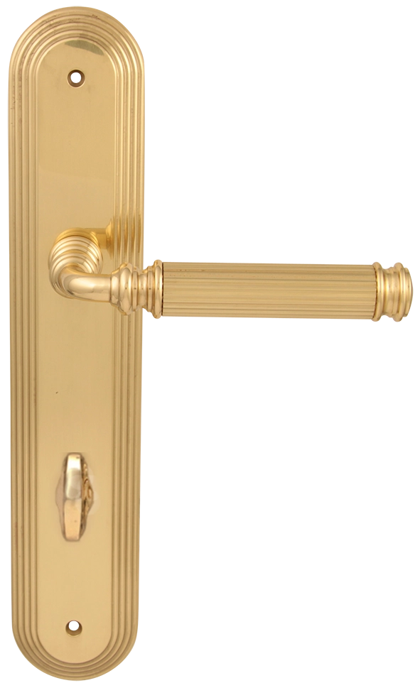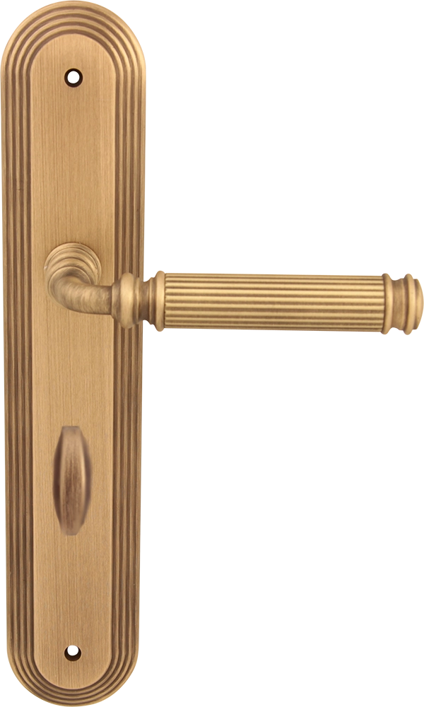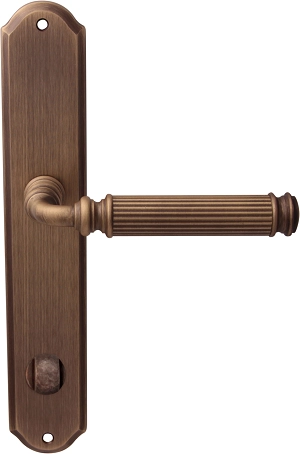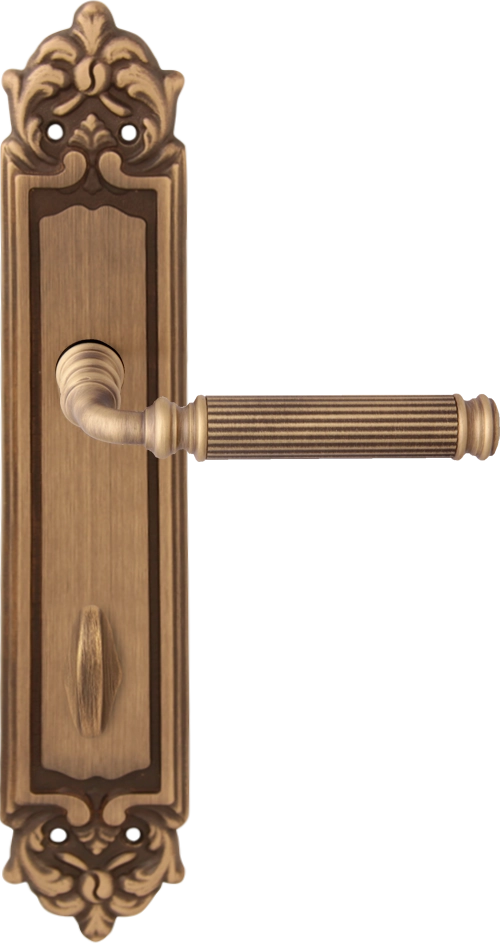 Дверная ручка на планке из коллекции Melodia фабрики Fadex (Италия) с отверстием под цилиндровый механизм. Дверные ручки выполнены в классическом стиле и изготовлены из высококачественной латуни методом художественного литья. Каждая модель, в зависимости от типа запирания замка, может иметь 4 варианта исполнения планки: без запирания (глухая), с сантехническим фиксатором, с отверстием под цилиндровый механизм, а также с отверстием под межкомнатный (кабинетный) ключ «буратино». Таким образом, ручки одной модели можно подобрать как для межкомнатных, так и для входных дверей.