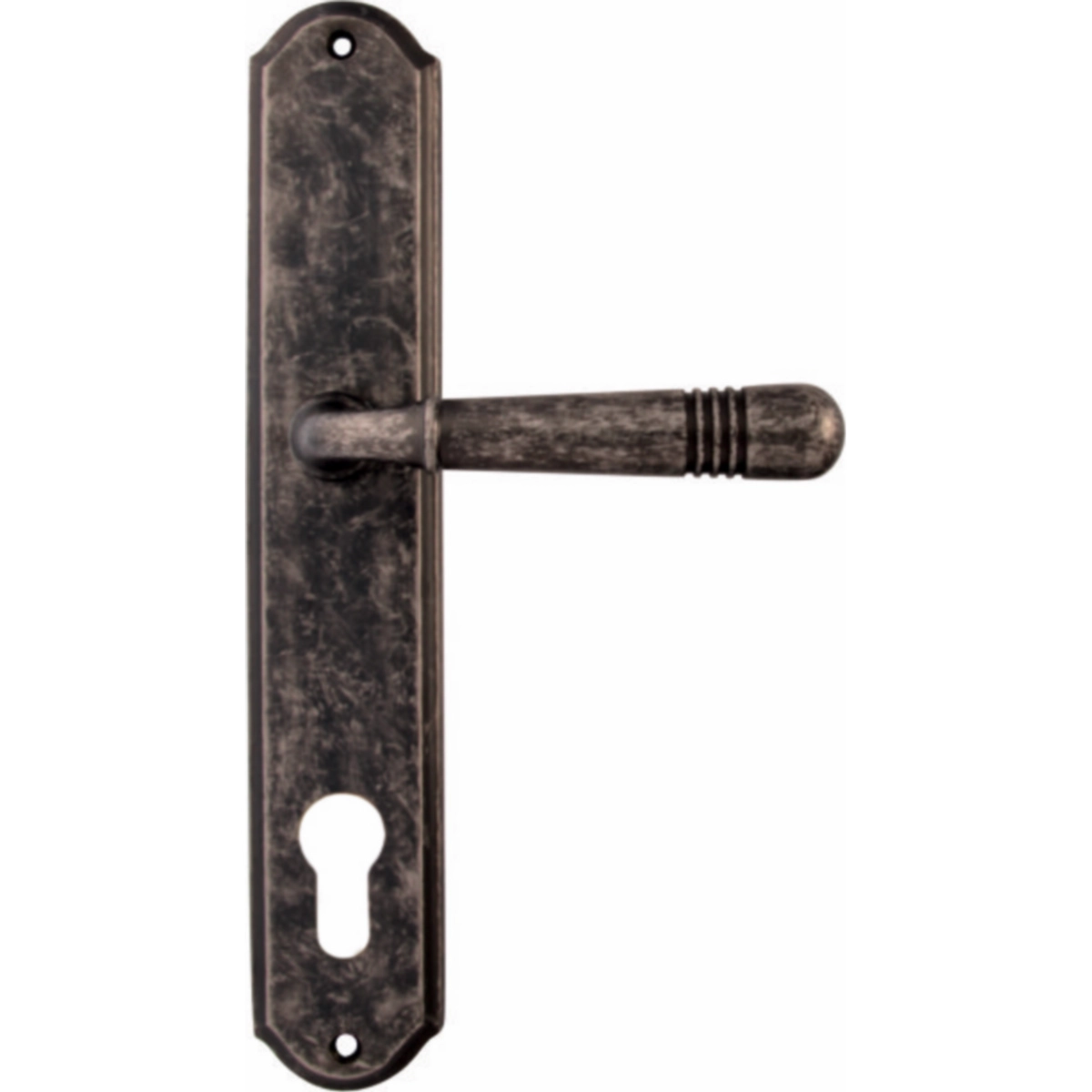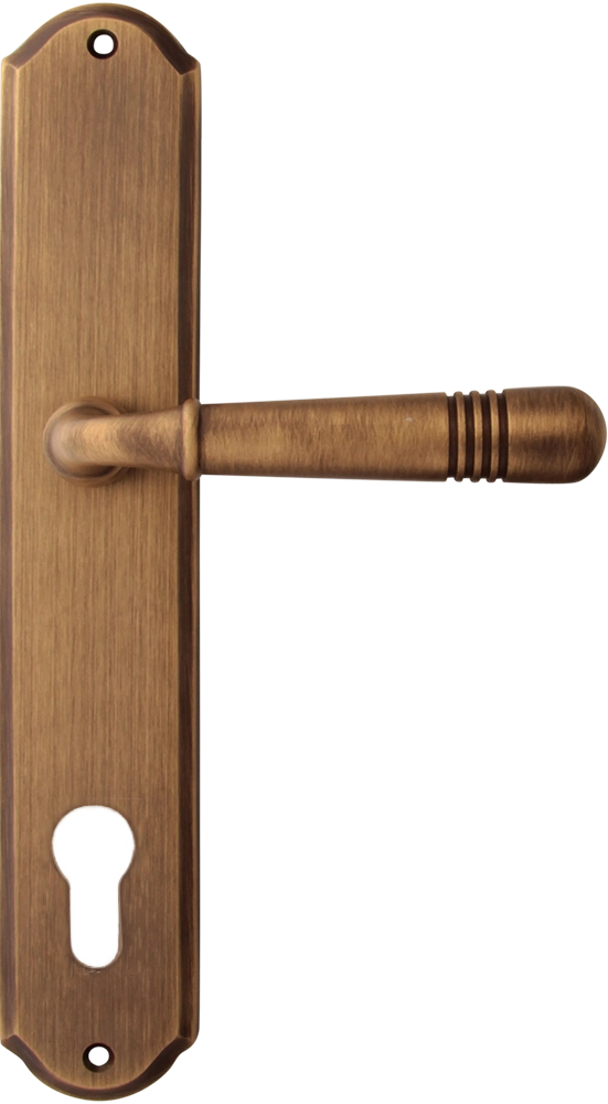 Дверная ручка на планке из коллекции Melodia фабрики Fadex (Италия) с отверстием под цилиндровый механизм. Дверные ручки выполнены в классическом стиле и изготовлены из высококачественной латуни методом художественного литья. Каждая модель, в зависимости от типа запирания замка, может иметь 4 варианта исполнения планки: без запирания (глухая), с сантехническим фиксатором, с отверстием под цилиндровый механизм, а также с отверстием под межкомнатный (кабинетный) ключ «буратино». Таким образом, ручки одной модели можно подобрать как для межкомнатных, так и для входных дверей.