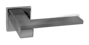 Ручки дверные на квадратной розетке из оригинальной авторской коллекции известного производителя дверной фурнитуры – фабрики DND handles (Италия). Каждая модель, в зависимости от типа запирания замка, может комплектоваться дополнительными накладками (розетками) на дверь: с сантехническим фиксатором, с отверстием под межкомнатный (кабинетный) ключ, а также с отверстием под цилиндровый механизм. Накладки полностью совпадают по форме и цвету с розетками на ручке. Таким образом, ручки одной модели можно подобрать как для межкомнатных, так и для входных дверей.