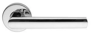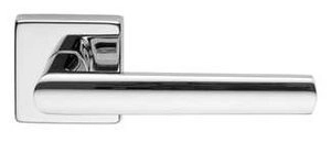 Ручки дверные на квадратной розетке из оригинальной авторской коллекции известного производителя дверной фурнитуры – фабрики DND handles (Италия). Каждая модель, в зависимости от типа запирания замка, может комплектоваться дополнительными накладками (розетками) на дверь: с сантехническим фиксатором, с отверстием под межкомнатный (кабинетный) ключ, а также с отверстием под цилиндровый механизм. Накладки полностью совпадают по форме и цвету с розетками на ручке. Таким образом, ручки одной модели можно подобрать как для межкомнатных, так и для входных дверей.