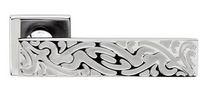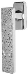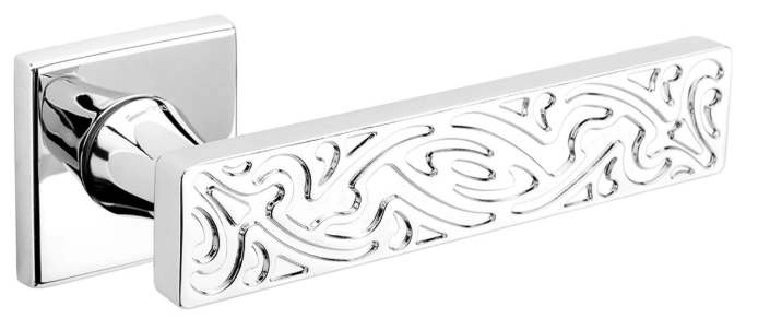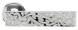 Ручка дверная на круглой розетке из оригинальной авторской коллекции известного производителя дверной фурнитуры – итальянской фабрики DND handles. Каждая модель, в зависимости от типа запирания замка, может комплектоваться дополнительными накладками (розетками) на дверь: с сантехническим фиксатором, с отверстием под межкомнатный (кабинетный) ключ, а также с отверстием под цилиндровый механизм. Накладки полностью совпадают по форме и цвету с розетками на ручке. Таким образом, ручки одной модели можно подобрать как для межкомнатных, так и для входных дверей.