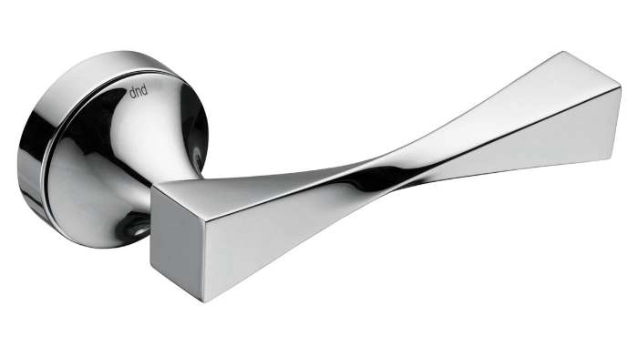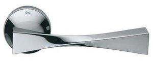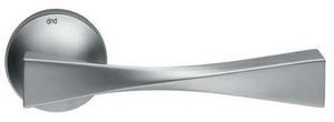 Ручка дверная на круглой розетке из оригинальной авторской коллекции известного производителя дверной фурнитуры – итальянской фабрики DND handles. Каждая модель, в зависимости от типа запирания замка, может комплектоваться дополнительными накладками (розетками) на дверь: с сантехническим фиксатором, с отверстием под межкомнатный (кабинетный) ключ, а также с отверстием под цилиндровый механизм. Накладки полностью совпадают по форме и цвету с розетками на ручке. Таким образом, ручки одной модели можно подобрать как для межкомнатных, так и для входных дверей.