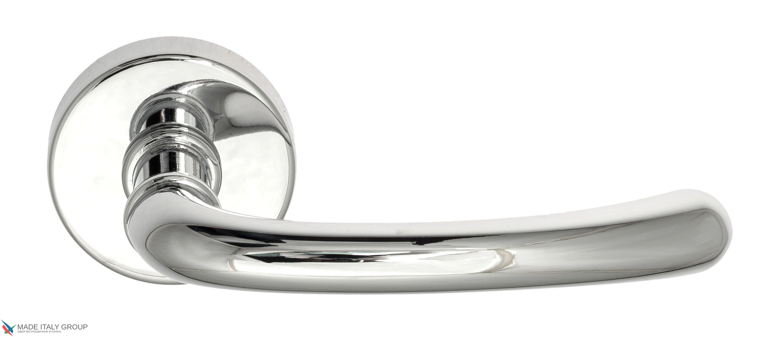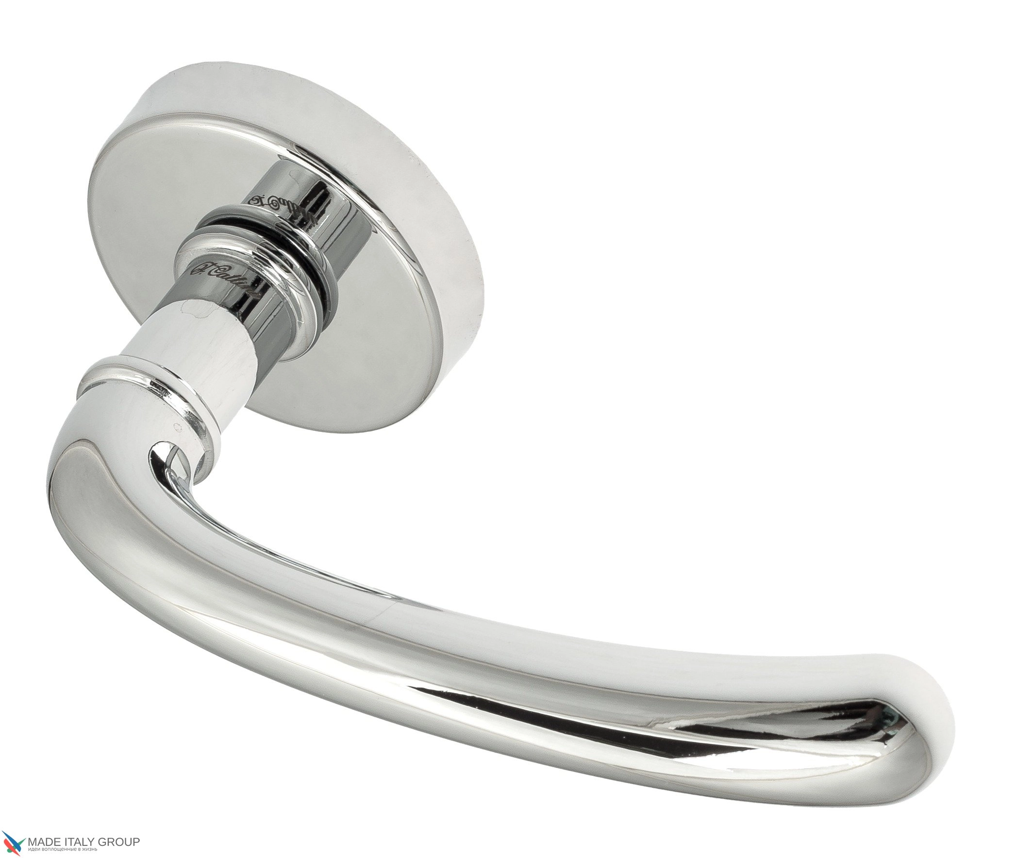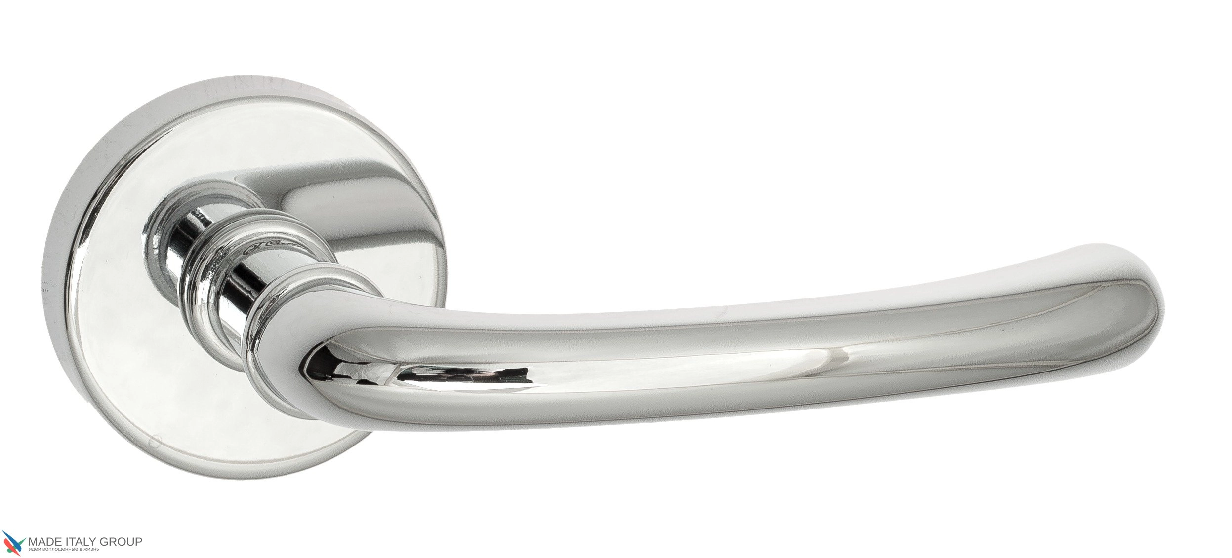 Дверная ручка «Iseo» фабрики Fratelli Cattini (Италия) на круглой розетке в современном стиле.