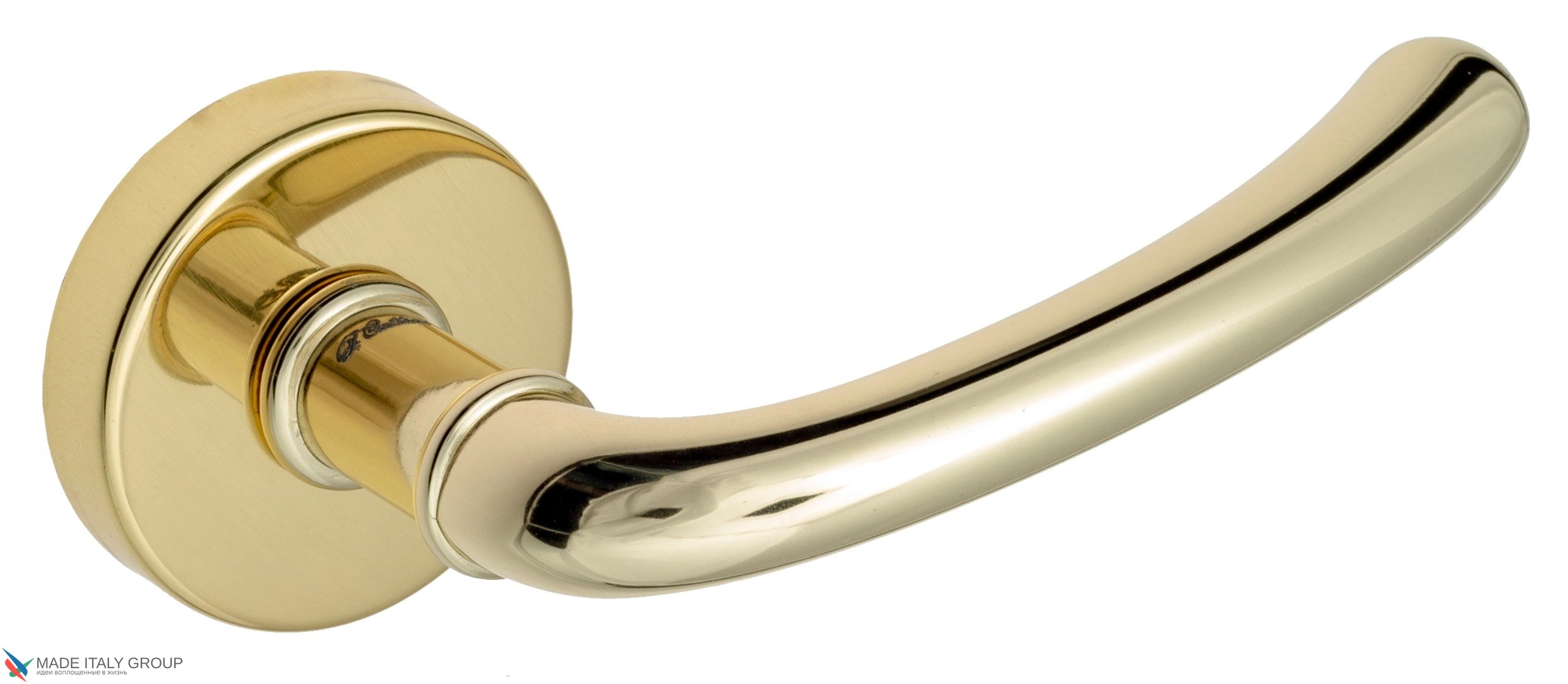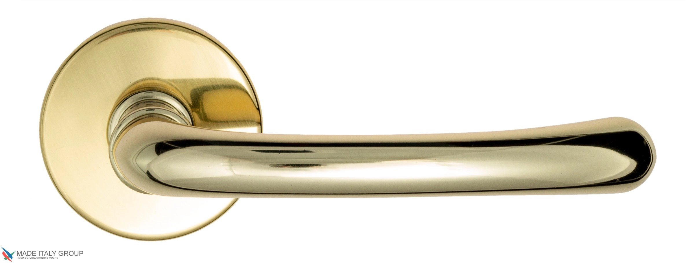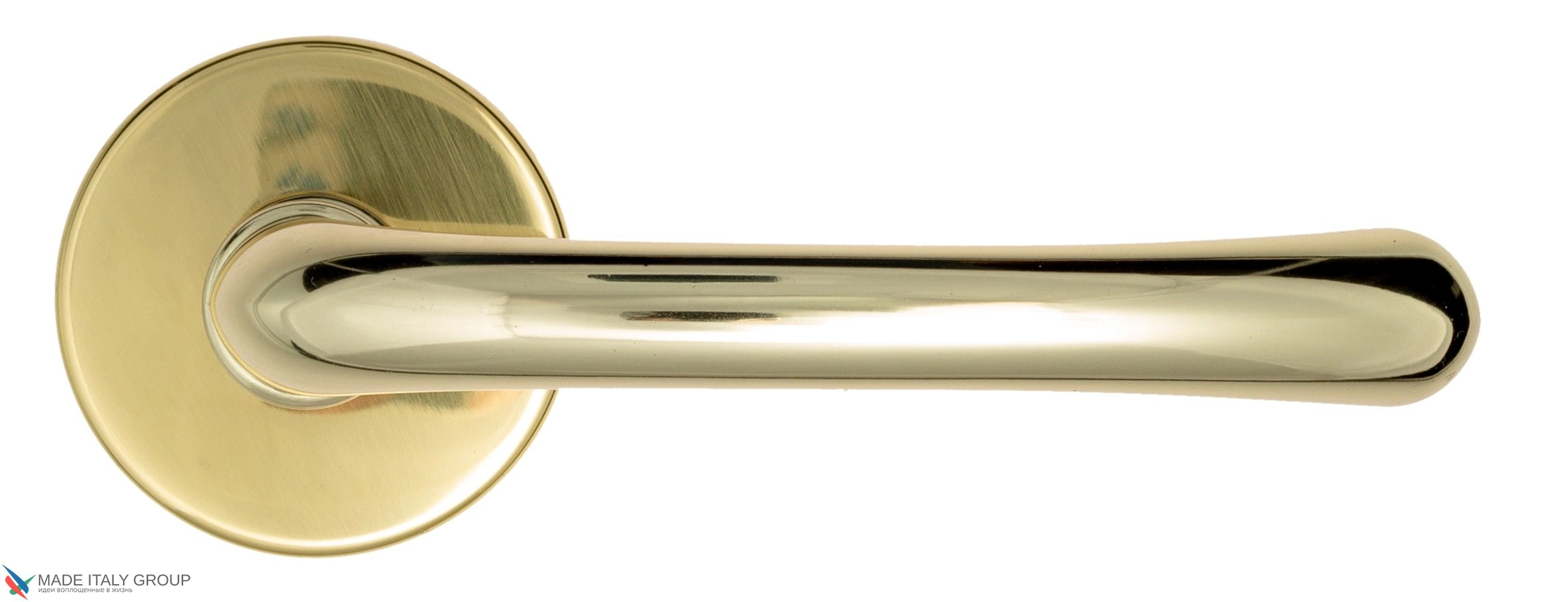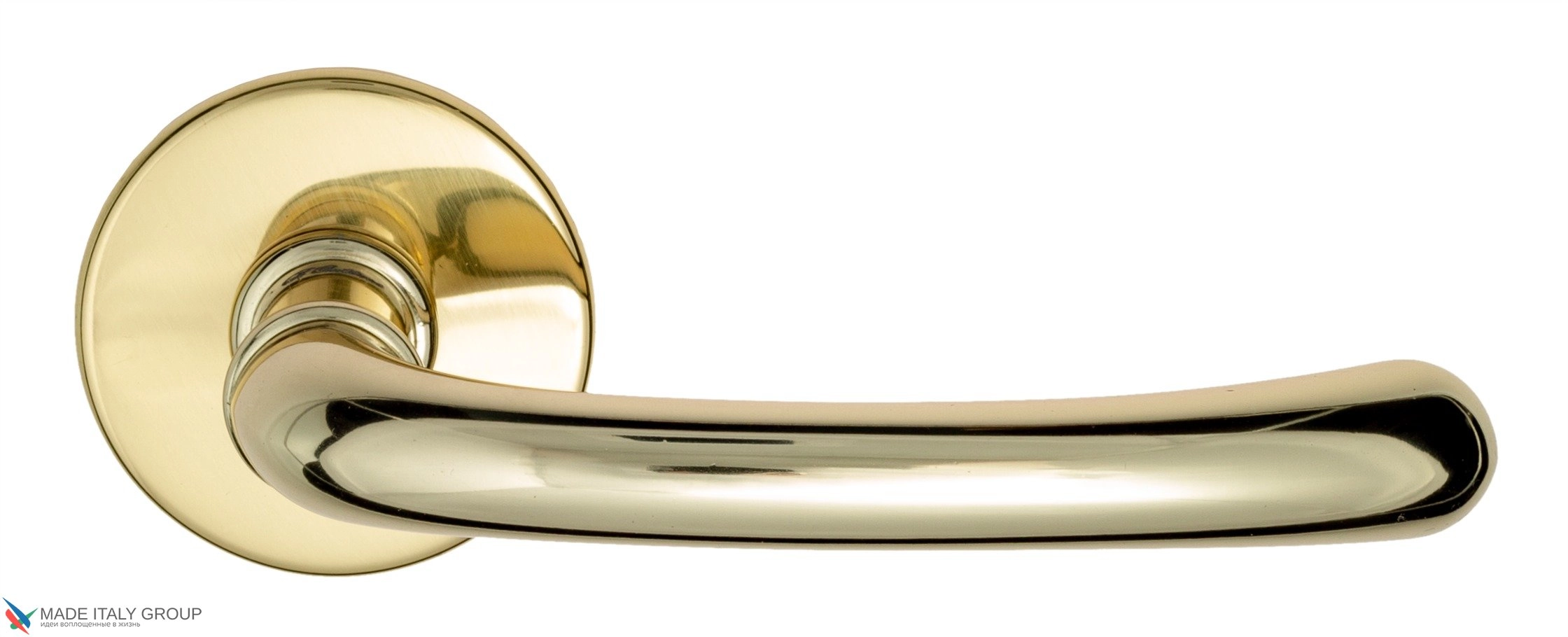 Дверная ручка «Iseo» фабрики Fratelli Cattini (Италия) на круглой розетке в современном стиле.