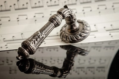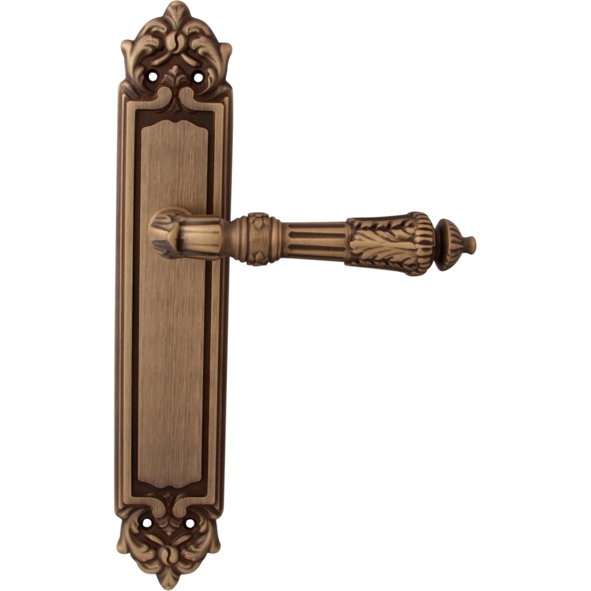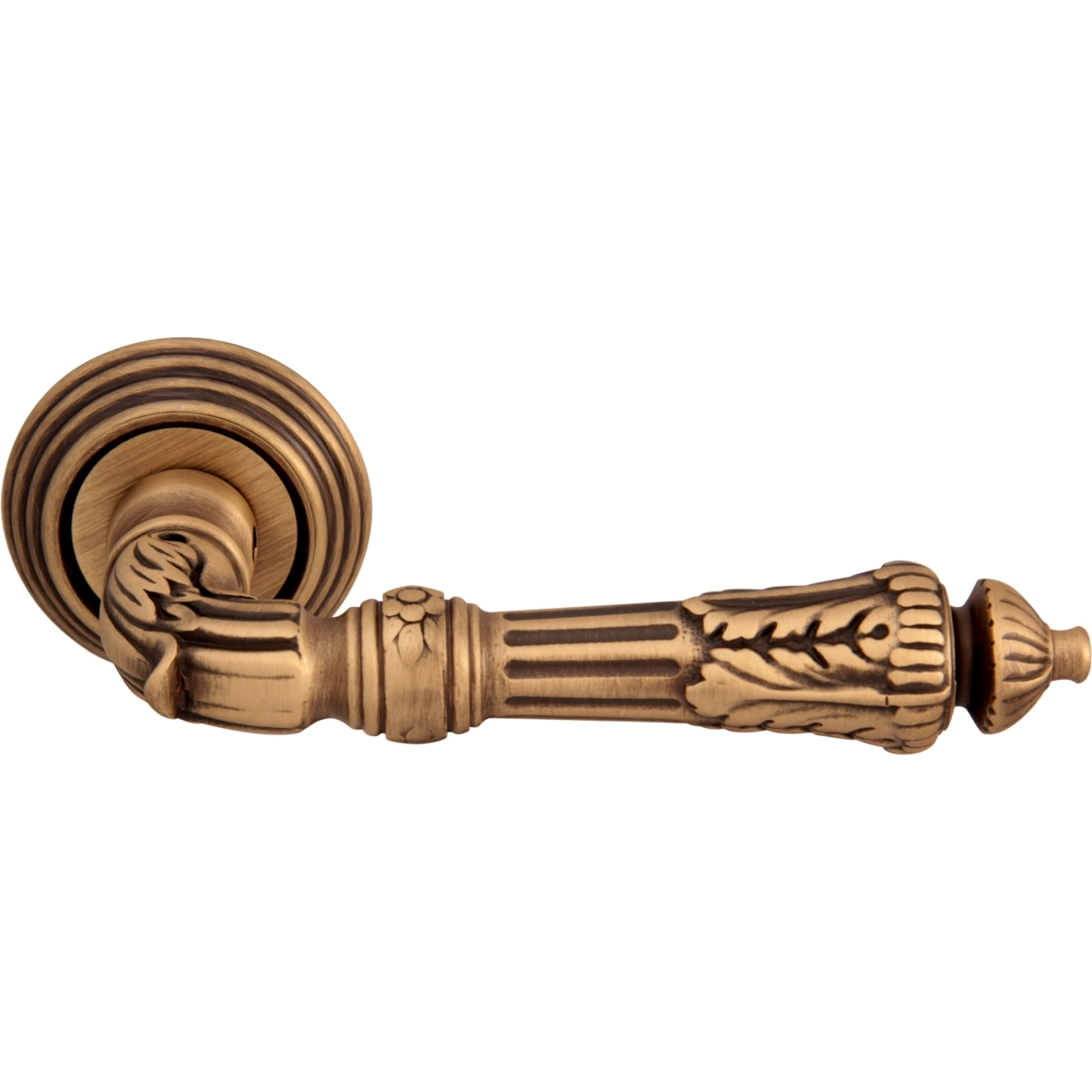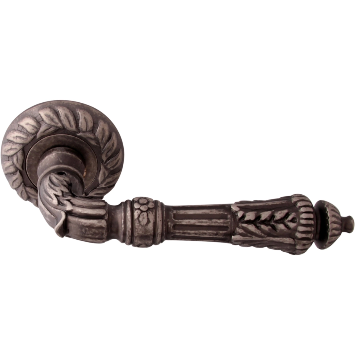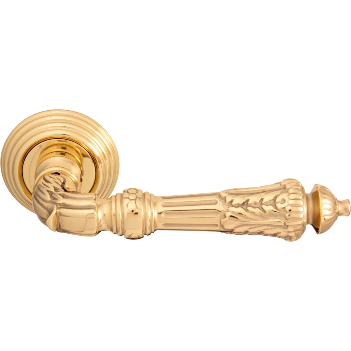 Дверная ручка из коллекции Melodia фабрики Fadex (Италия) на круглой розетке. Дверные ручки выполнены в классическом стиле и изготовлены из высококачественной латуни методом художественного литья. Каждая модель, в зависимости от типа запирания замка, может комплектоваться дополнительными накладками (розетками) на дверь: с сантехническим фиксатором, с отверстием под межкомнатный (кабинетный) ключ, а также с отверстием под цилиндровый механизм. Накладки полностью совпадают по форме и цвету с розетками на ручке. Таким образом, ручки одной модели можно подобрать как для межкомнатных, так и для входных дверей.