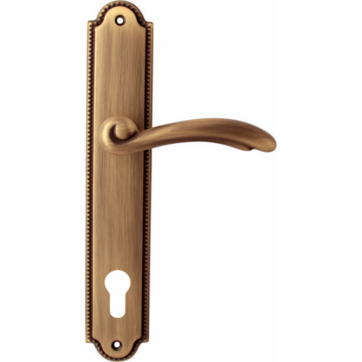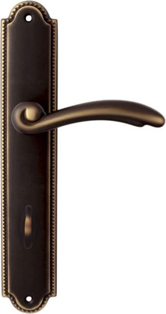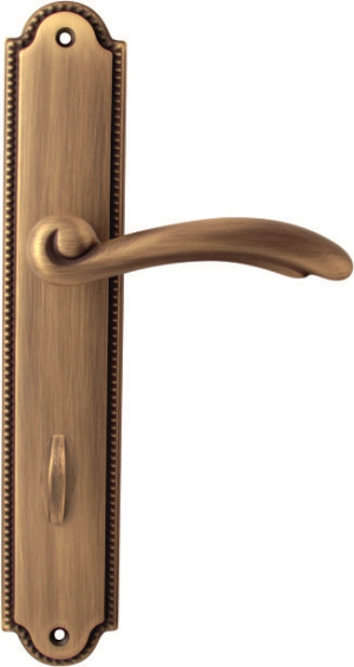 Дверная ручка из коллекции Melodia фабрики Fadex (Италия) на круглой розетке. Дверные ручки выполнены в классическом стиле и изготовлены из высококачественной латуни методом художественного литья. Нанесение покрытия осуществляется с помощью техники патинирования. Каждая модель, в зависимости от типа запирания замка, может комплектоваться дополнительными накладками (розетками) на дверь: с сантехническим фиксатором, с отверстием под межкомнатный (кабинетный) ключ, а также с отверстием под цилиндровый механизм. Накладки полностью совпадают по форме и цвету с розетками на ручке. Таким образом, ручки одной модели можно подобрать как для межкомнатных, так и для входных дверей.