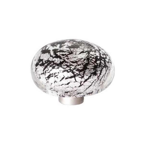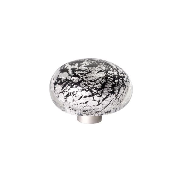 24EM.009037.NA Ручка-кнопка мебельная из стекла, фольга чёрная / серебро