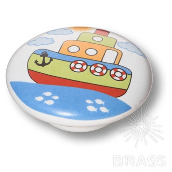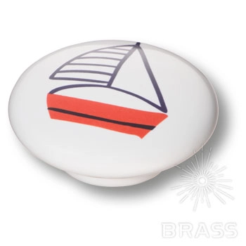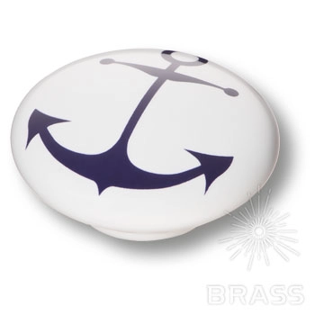 B-113 Ручка-кнопка мебельная керамика, якорь красный