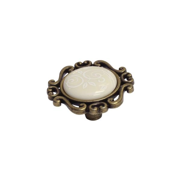 P41.Y01.G4.MD1G Ручка-кнопка мебельная, бронза античная "Флоренция" / керамика