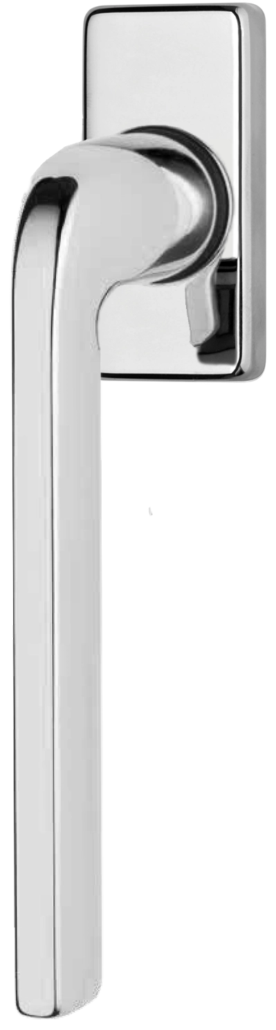 Оконная ручка для стеклопакетов из коллекции Forme фабрики Fadex (Италия) цвета хром полированный в современном стиле. Три положения фиксации окна: закрыто–открыто – открыто на проветривание. Для каждой модели можно подобрать идентичную по дизайну и цвету ручку для балконной или обычной межкомнатной двери.